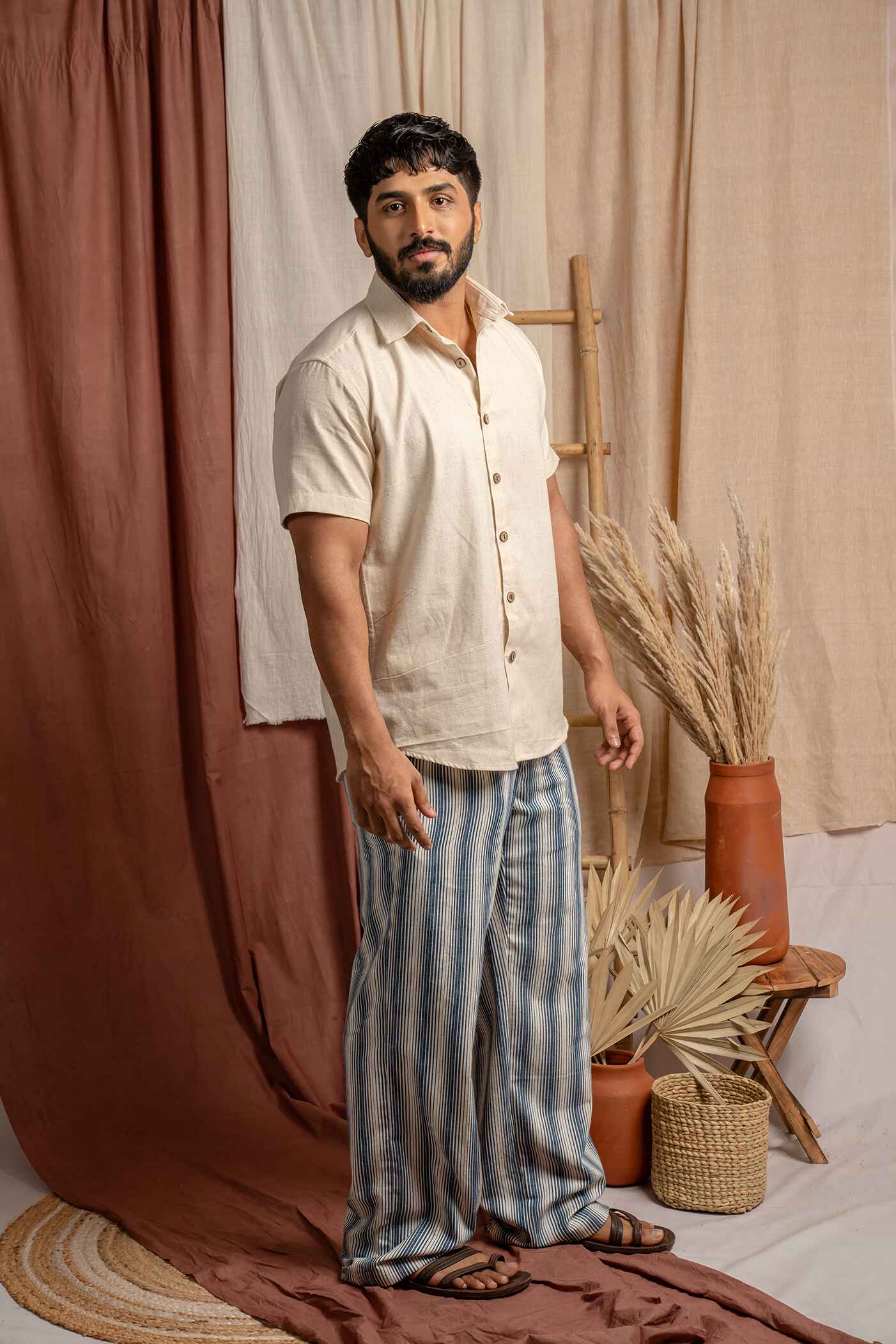 Kora (un-bleached & un-dyed) Khadi cotton classic collar, half sleeve shirt with coconut shell buttons.
