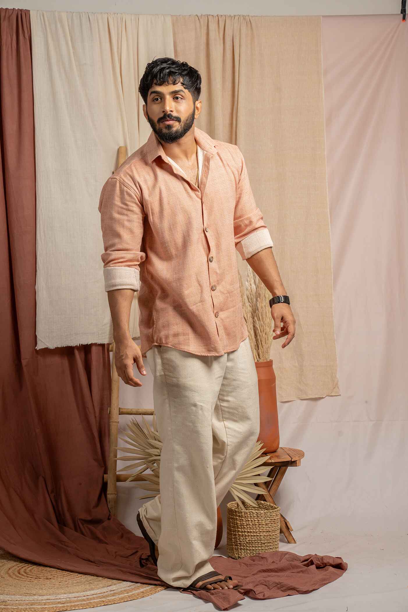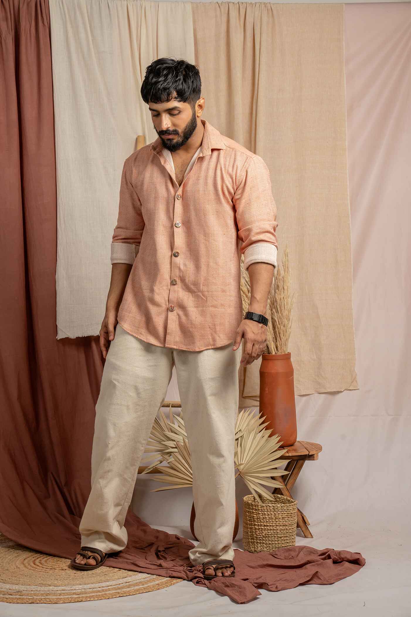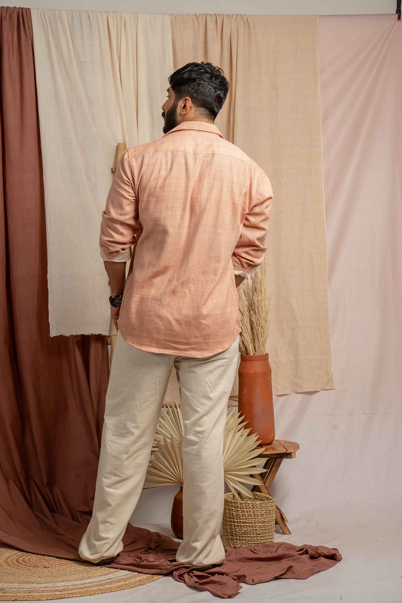 Salmon pink full sleeve classic collar shirt with full sleeves