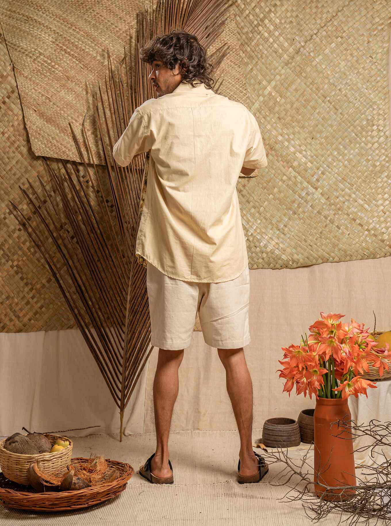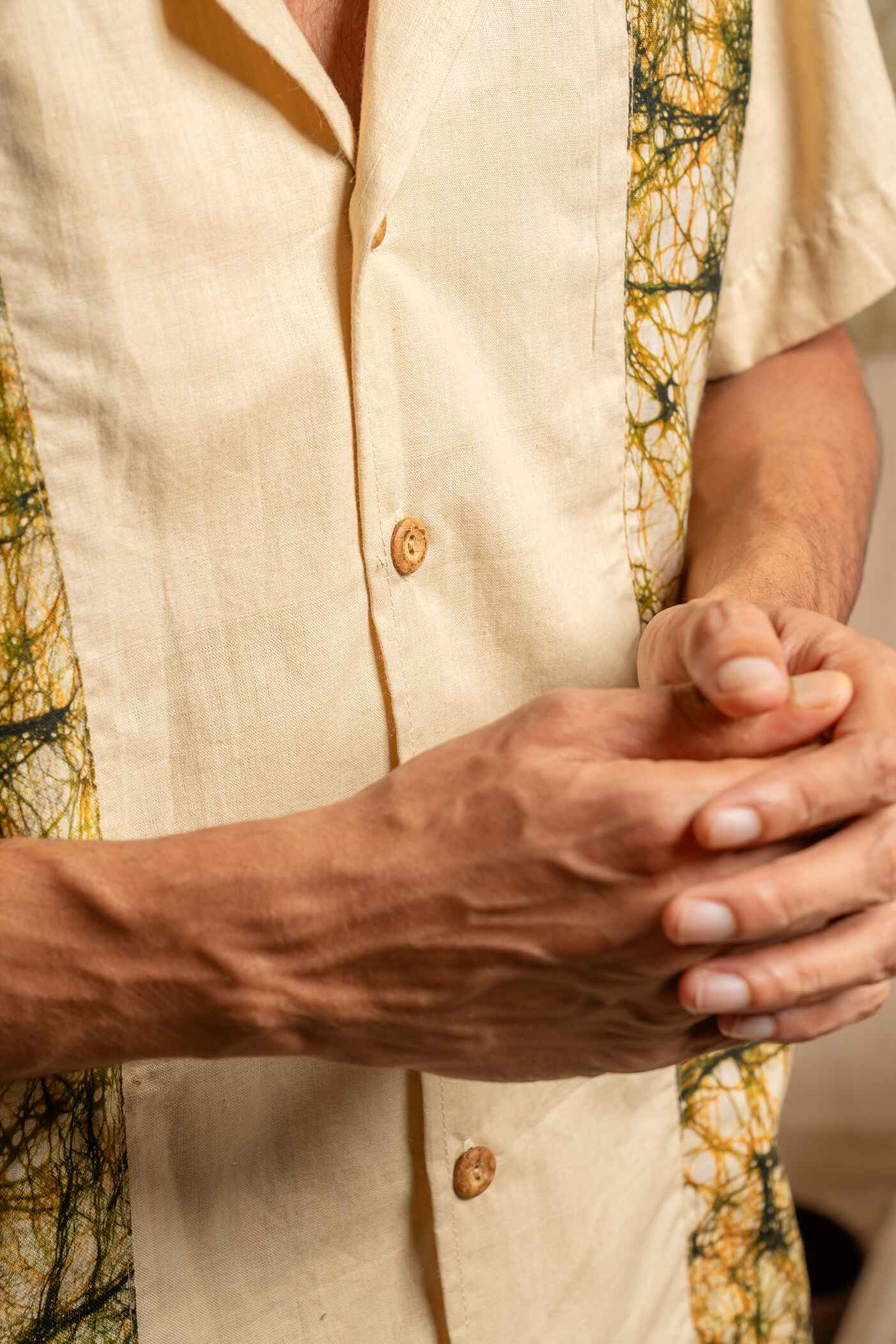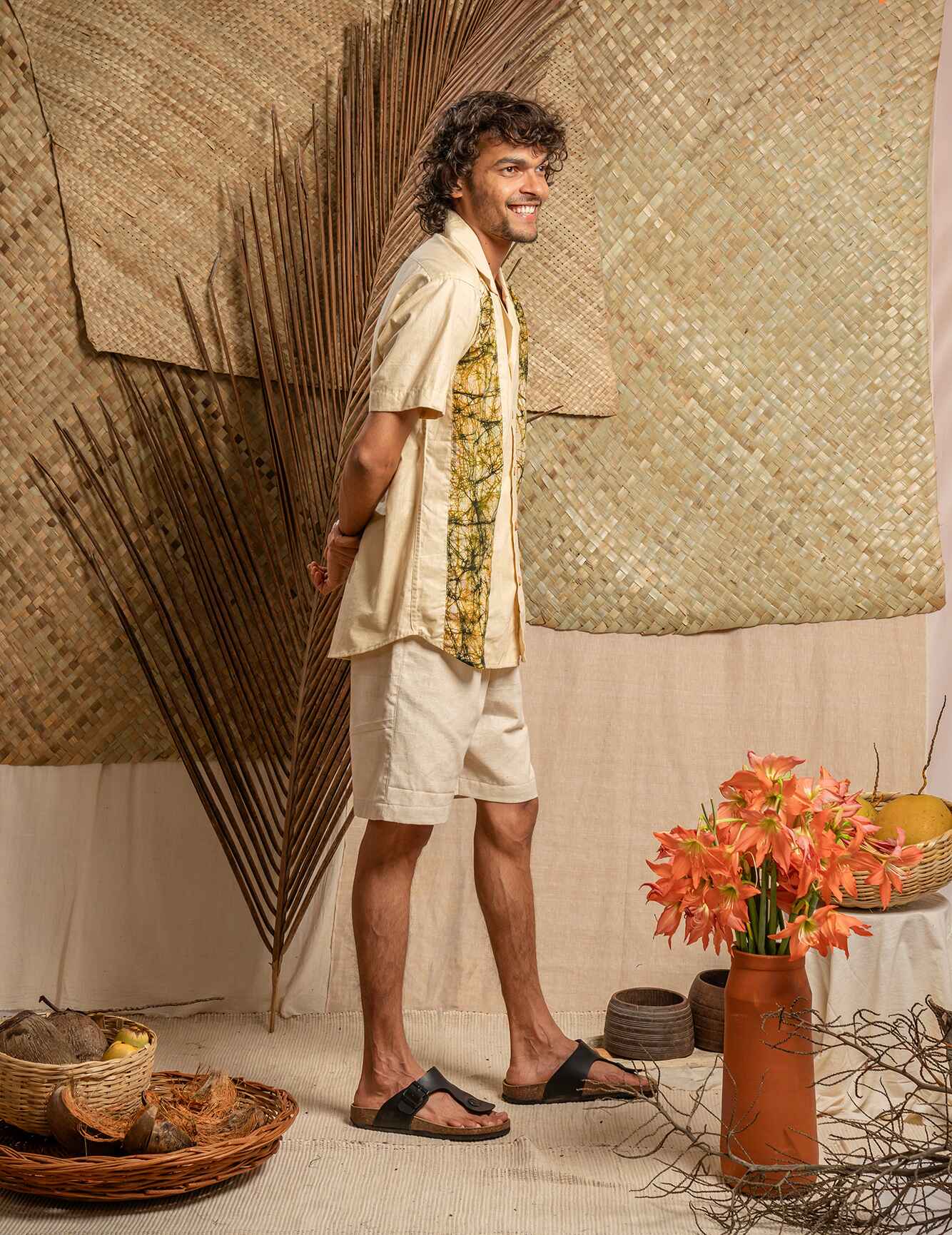 Khadi cotton shirt with batik dyed vertical color blocking, lapel collar and half sleeves